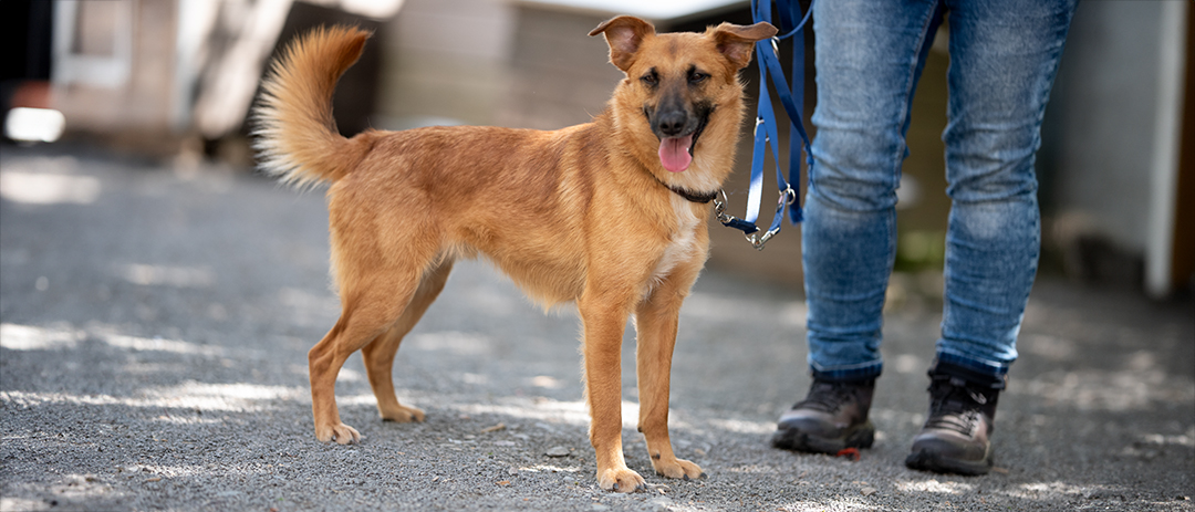 Er lernte in der kurzen Zeit an der Leine zu gehen, Auto zu fahren (Kofferraum), im Haus zu wohnen mit anderen Hunden. Seine Pflegestelle beschreibt ihn als nach kurzer Zeit sehr anhänglich, fröhlich und freundlich mit den anderen Hunden, stubenrein und er sei sehr talentiert für Mantrailing.