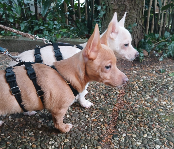 Wir wissen schon, dass man nicht in die Wohnung macht, aber so ganz klappt das noch nicht. Wir benehmen uns auch mittlerweile beim Autofahren und bleiben auch ein bißchen alleine zuhause. Als Chihuahuamixe sind wir natürlich auch sehr lebhaft und wachsam und schlagen an, wenn uns was komisch vorkommt! Deshalb üben wir auch gerade Hundebegegnungen, weil wir da erstmal immer ziemlich laut sind. Wenn wir ausgepowert sind, lieben wir es zu schmusen, auf dem Schoß von Mama zu schlafen oder im Bett.