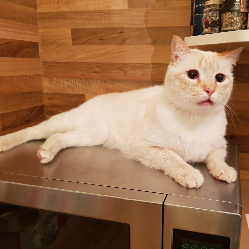 Emil ist ein Siam-Mix, redpoint – ein wunderschöner cremefarbener Kater mit hellblauen Augen. Er ist größer als Teddy und doch war es vor vielen Jahren Teddy, der Emil aus der Reserve gelockt hat. Emil braucht viel Zeit, um sich mit neuen Situationen anzufreunden. Im alten Zuhause hat er jeden Morgen das Kaffeekochen überwacht, somit stellt sich die Frage, ob er vielleicht inzwischen selber Kaffee kochen kann! Theoretisch bestimmt, und wenn man morgens beim Kaffeekochen nicht so gerne redet, dafür aber aufmerksame Gesellschaft schätzt, übernimmt Emil sicher gerne diese Aufgabe! Auch er findet sich zum Mittagsschläfchen mit seinem Menschen gerne auf der Couch ein.