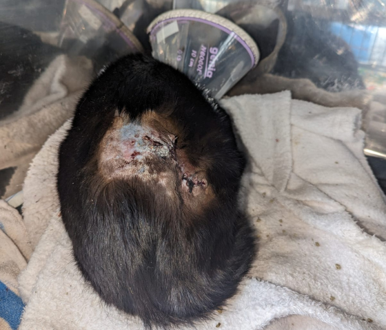 "Metternich" haben wir den unkastrierten, verletzten Kater genannt. Mit einem offenen Rücken wurde er gebracht. Die Wunde wird noch versorgt.