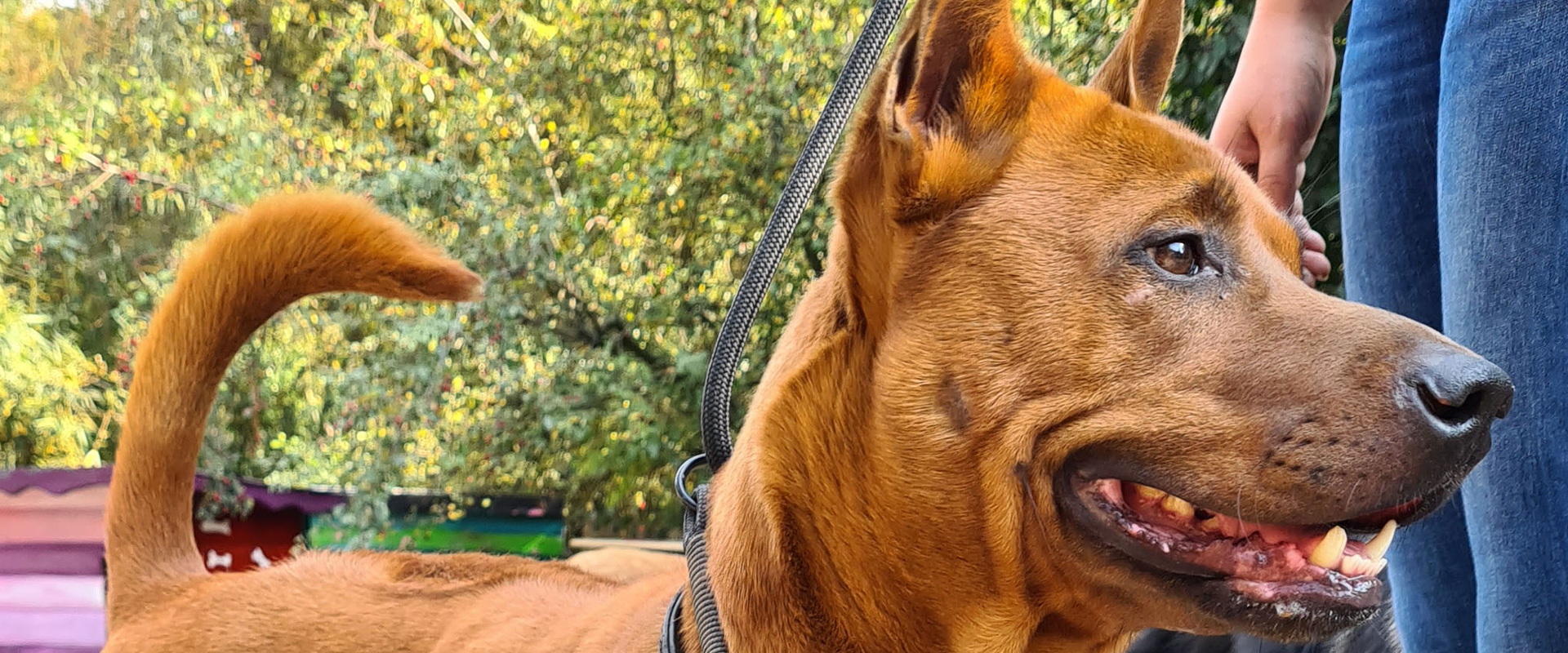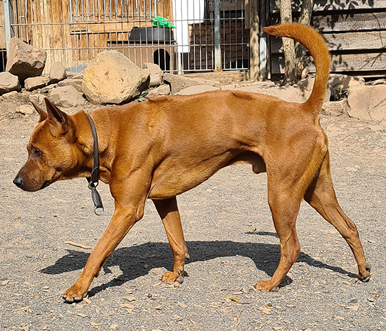 Joy ist ein reinrassiger Thai Ridgeback Rüde. Über Umwege gelangte der stolze Kerl zu uns. Es sei nur soviel gesagt: eigentlich wäre er eingeschläfert worden. Bei uns zeigte sich Joy anfangs von seiner schlechtesten Seite und wir konnten ihn nur mit Maulkorb händeln. Doch ganz schnell hat sich der imposante Rüde gewandelt und läuft mittlerweile frei im Hof, zeigt sich freundlich, eher ignorant, mit Menschen und verträglivh mit den meisten Hunden. Mit unkastrierten Rüden kann es schwierig werden, aber Joy ist ziemlich von sich selbst überzeugt. Er reagiert auf blöde Anmache direkt und schnell, aber von sich aus sucht er eigentlich keinen Streit. Thai Ridgebacks sind absolut keine Anfängerhunde. Die sehr ursprüngliche Rasse wurde in Thailand als Begleiter und Wächter der Fuhrkarren eingesetzt. Sie sind schnell, sprungstark, unbestechlich, beschützend und hoch jagdlich motiviert.