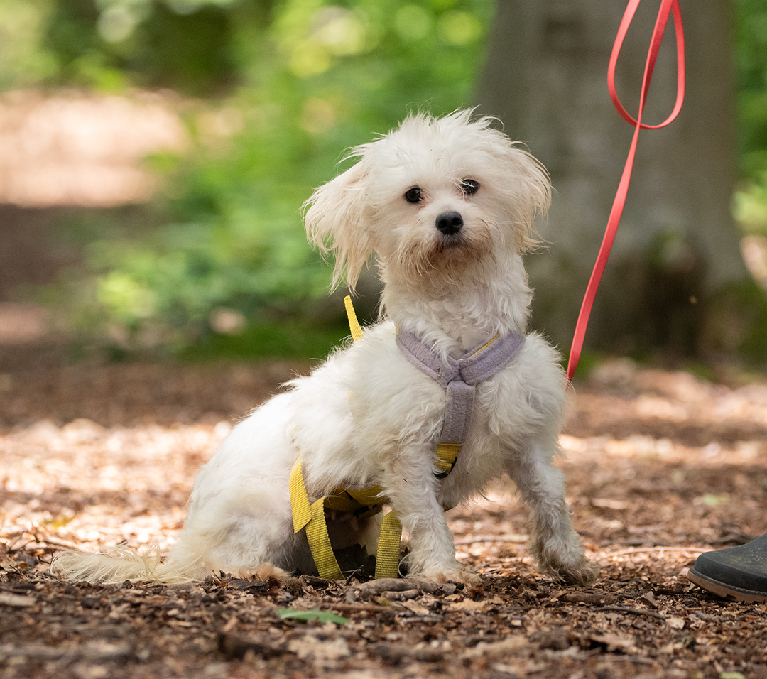 Jubee geht gerne, spazieren ist dabei sehr wuselig und interessiert sich für alles, kommt, aber wenn sie gerufen wird.