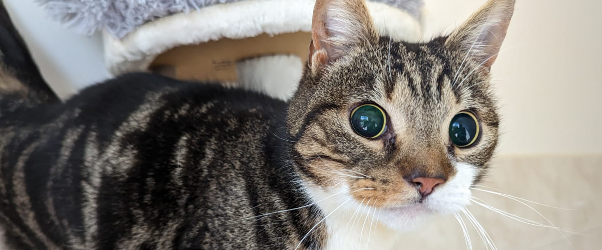Er ist ein ganz goldiger und lieber Kerl, der für sein Leben gerne schmust und sehr zugewandt ist. Andere Katzen findet Karlo nicht toll, um es mal dezent auszudrücken. Wir haben lange mit uns gerungen, denn eigentlich sollte ein junger Kater Kontakt zu Artgenossen haben, aber Karlo sieht und hört aufgrund des Unfalls offenbar nicht mehr viel. Dass er die Körpersprache der Katzen, die um ihn herum sind, nicht deuten kann, scheint ihn zu ängstigen. Mit Menschen kommt er viel besser klar. Wie viel er tatsächlich sieht oder hört, wäre in einer Pflegestelle viel besser zu beobachten!