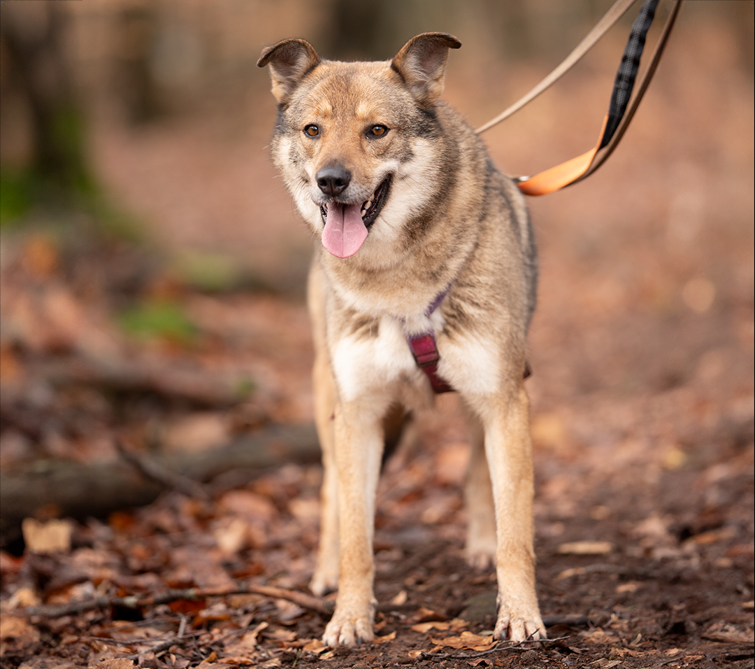 Die lauffreudige Hündin ist gerne mit ihren Gassigehern in der Natur unterwegs und läuft schon gut an der Leine.