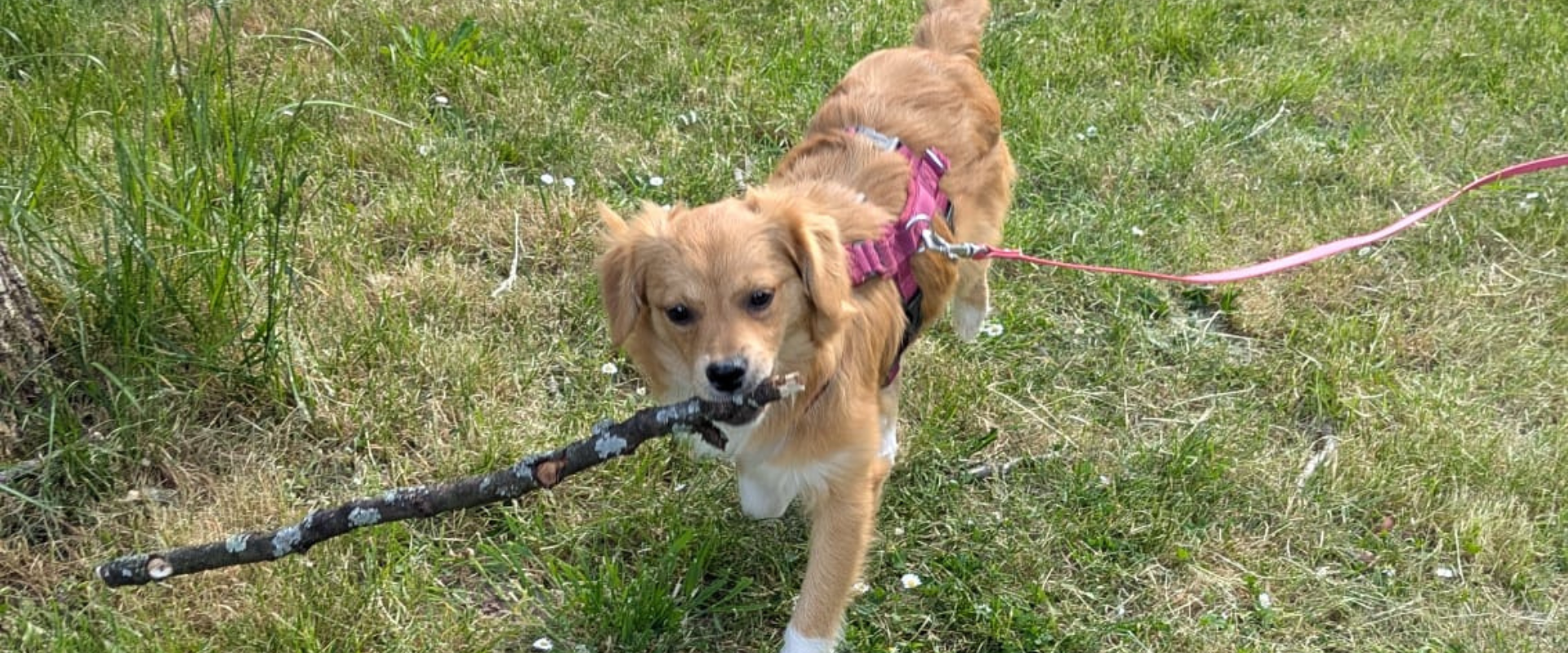 Lumi ist nun seit einer Woche in ihrer Pflegestelle und hat in dieser kurzen Zeit eine beeindruckende Entwicklung durchgemacht: Aus einem ängstlichen, unsicheren Hundemädchen ist ein fröhlicher, neugieriger Junghund geworden!