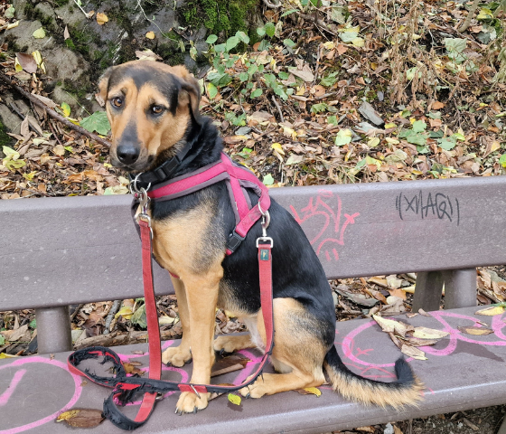 Fürs Training und die Vermittlung kam sie im Oktober 2020 zu mir nach Hessen. Sie trug 24/7 einen Maulkorb und lernte Regeln kennen. Da sie überhaupt nicht auf Training ansprach, vermutete ich eine Schilddrüsenproblematik, die sich bestätigte. Mit entsprechender Medikation besserte sich Mayas Trainierbarkeit.