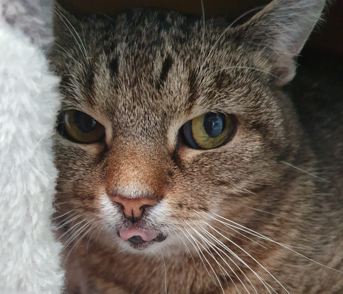 Medarda braucht etwas Zeit, um Vertrauen zu fremden Menschen zu fassen, dann ist sie aber eine liebe, recht unkomplizierte Katze, die sich auch gerne streicheln lässt und ansonsten (wahrscheinlich) der Faulheit frönt.