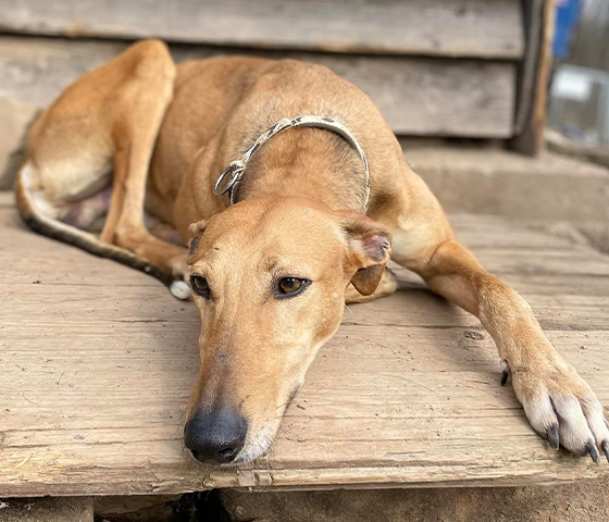 Nacho ist ein Magyar Agár-Rüde, äußerst freundlich mit Menschen und gut verträglich mit anderen Hunden.