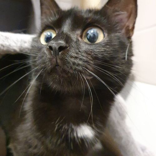 Die kleine PJ kommt aus zweifelhafter Haltung, ist aber ein kleiner Sonnenschein. Im Katzenhaus hält sie sich - frisch angekommen - noch etwas zurück, kommt aber bei Ansprache gerne aus ihrem Eckchen und lässt sich streicheln.