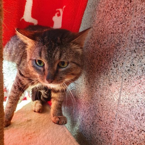 Puma musste zu TiNO umziehen, weil sein Frauchen ebenfalls umziehen muss, und zwar ziemlich weit weg. Sie hätte ihn gerne mitgenommen, aber das ging nicht.