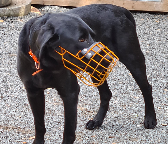 Sanouk, der uns nach seinem Pensionsaufenthalt bei TiNO übereignet wurde, gibt uns weiterhin Rätsel auf. Der so prachtvoll aussehende Labrador zeigt sich weiterhin sehr reserviert und nicht wirklich interessiert am Menschen. Oft liegt er einfach irgendwo im TiNO-Hof rum und beobachtet einfach nur. Von sich aus, geht er auf niemanden zu. Den Maulkorb trägt er, weil er auf Begrenzungen oder Einschränkungen außerst wehrhaft reagiert. Wir haben jetzt mal farblich von grau auf orange getauscht - vielleicht macht das ja seine Laune ein bisschen sonniger! :-)