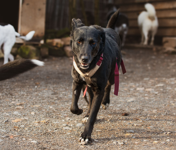 Shonda, eine schwarze Labradorähnliche, nette Hündin. Shonda lebt bei uns in der Hundegruppe und hat überhaupt kein Problem mit anderen Hunden. Anfangs fand sie das spazieren gehen unnötig mit diesem Geschirr und dieser daranhängenden Person. :-)