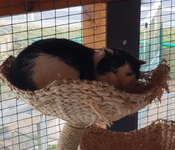 Vox teilt das Schicksal vieler Odenwälder Kater: er hat sich mit FIV infiziert. Es klingt schlimmer, als es ist, denn FIV wird tatsächlich nur beim Austausch von Körperflüssigkeiten weitergetragen. Vox ist weit davon entfernt, eine Beißerei mit anderen Katzen anzufangen und der Fortpflanzung haben wir einen Riegel vorgeschoben.