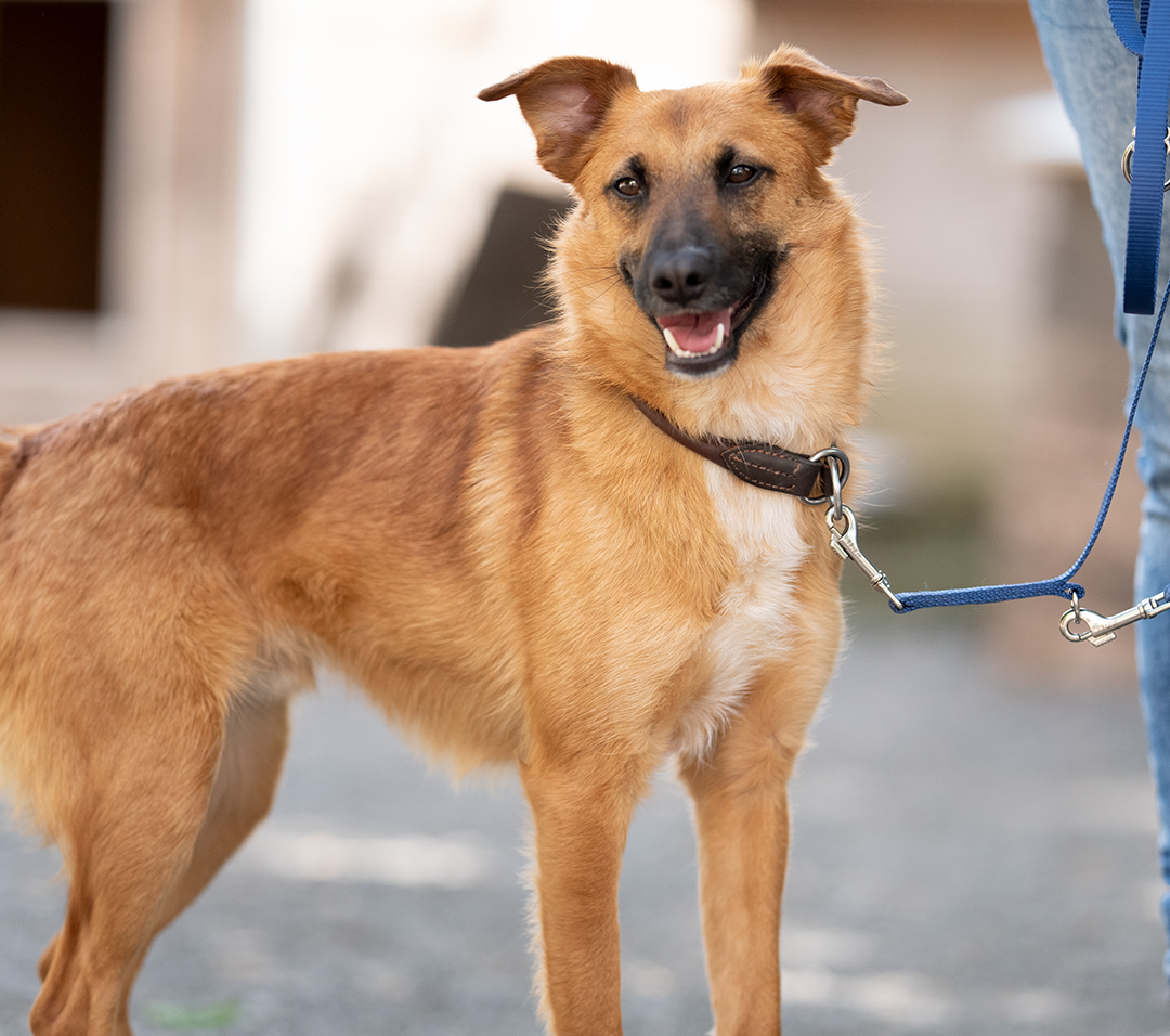 Er lernte in der kurzen Zeit an der Leine zu gehen, Auto zu fahren (Kofferraum), im Haus zu wohnen mit anderen Hunden. Seine Pflegestelle beschreibt ihn als nach kurzer Zeit sehr anhänglich, fröhlich und freundlich mit den anderen Hunden, stubenrein und er sei sehr talentiert für Mantrailing.