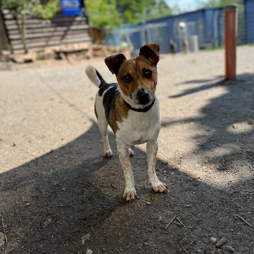 Charles haben wir von einem italienischen Partnerverein übernommen. Nach der Ankunft konnte man nicht sehr viel mit ihm anfangen, er war mit der neuen Situation etwas überfordert. Jetzt ist Charles komplett bei uns angekommen, er macht seine ersten Spaziergänge und erkundet die Neue Welt. Wenn er nicht spazieren geht, läuft er den ganzen Tag mit den verschiedensten Hunden durch den Hof. Mit Hunden hat er kein Problem, Katzen sind noch nicht bekannt. Bei fremden Menschen ist er im Erstkontakt noch etwas unsicher. Bei bekannten Menschen kann er schon wedeln, wenn sie ihn rufen.