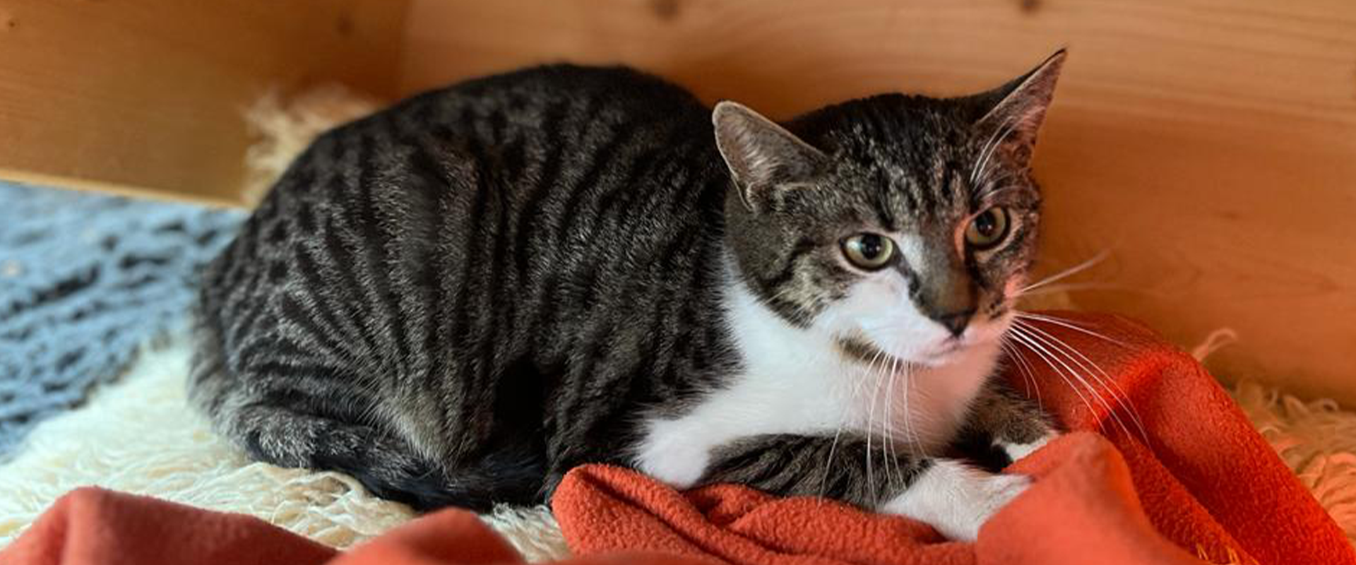 Emmanuela ... hm, wer kennt das Lied "Lass die Finger von Emanuela"?. Das könnte sie den ganzen Tag singen, wenn sie singen könnte. Emmanuela hatte noch nicht soooo viel Menschenkontakt und möchte deshalb gerne, dass man die Finger von ihr lässt. Diesen Wunsch werden wir nicht ewig erfüllen können. Sie ist noch kein Jahr alt und ist viel zu niedlich und viel zu jung, um ein Leben als verwilderte Draußenkatze zu leben. Für Emmanuela braucht es einen Eimer voller Geduld, vielleicht auch zwei oder drei. Man muss damit leben können, lange angefaucht zu werden. Dafür ist, wie man auf den Bildern sieht, Emmanuela sehr sozial und hat überhaupt nichts gegen die Gesellschaft anderer Katzen. Wer also eine oder zwei Katzen hat, die sich ebenso mit Geduld wappnen können und als Team Mensch-Katze Emmanuela sozialisieren wollen, sollte sich bei uns melden. Emmanuela ist kastriert, geimpft, gechipt und sollte nach abgeschlossener Eingewöhnung als Belohnung für ihre Mitarbeit wieder Freigang haben dürfen.