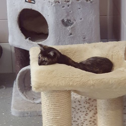 Die kleine Gabriela ist ein Fundtier, sehr skeptisch gegenüber Menschen, wie man auf den Bildern sieht, beobachtet man sie jedoch aus nur 1 bis 2 Metern Entfernung, ist sie ein bezauberndes, neugieriges Katzenkind, das gerne spielt, tobt, rennt, Unsinn macht und auch ganz entspannt schlafen kann.
