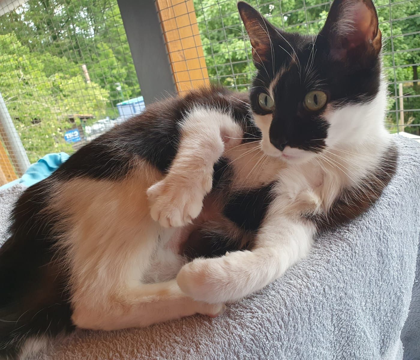 Sie ist eine sehr quirlige Katze, verspielt, verschmust und sehr gesprächig. Schon an ihrem Blick sieht man: die ist lebhaft. Gisi schließt sich sehr an Menschen an und ist sofort zur Stelle, wenn man das Katzenhaus betritt. Sie will auf keinen Fall irgendwas verpassen. Andere Katzen braucht sie nicht wirklich zu ihrem Glück (und ehrlich gesagt haben wir den Eindruck, dass unsere Katzen im Katzenhaus auch gerne ihre Ruhe vor ihr hätten).