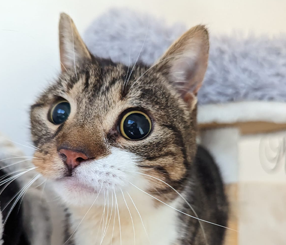 Er ist ein ganz goldiger und lieber Kerl, der für sein Leben gerne schmust und sehr zugewandt ist. Andere Katzen findet Karlo nicht toll, um es mal dezent auszudrücken. Wir haben lange mit uns gerungen, denn eigentlich sollte ein junger Kater Kontakt zu Artgenossen haben, aber Karlo sieht und hört aufgrund des Unfalls offenbar nicht mehr viel. Dass er die Körpersprache der Katzen, die um ihn herum sind, nicht deuten kann, scheint ihn zu ängstigen. Mit Menschen kommt er viel besser klar. Wie viel er tatsächlich sieht oder hört, wäre in einer Pflegestelle viel besser zu beobachten!