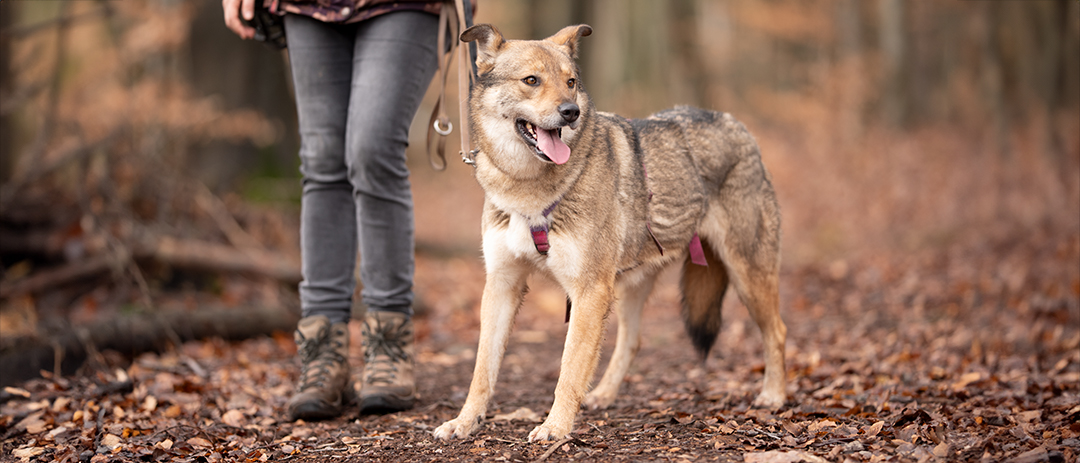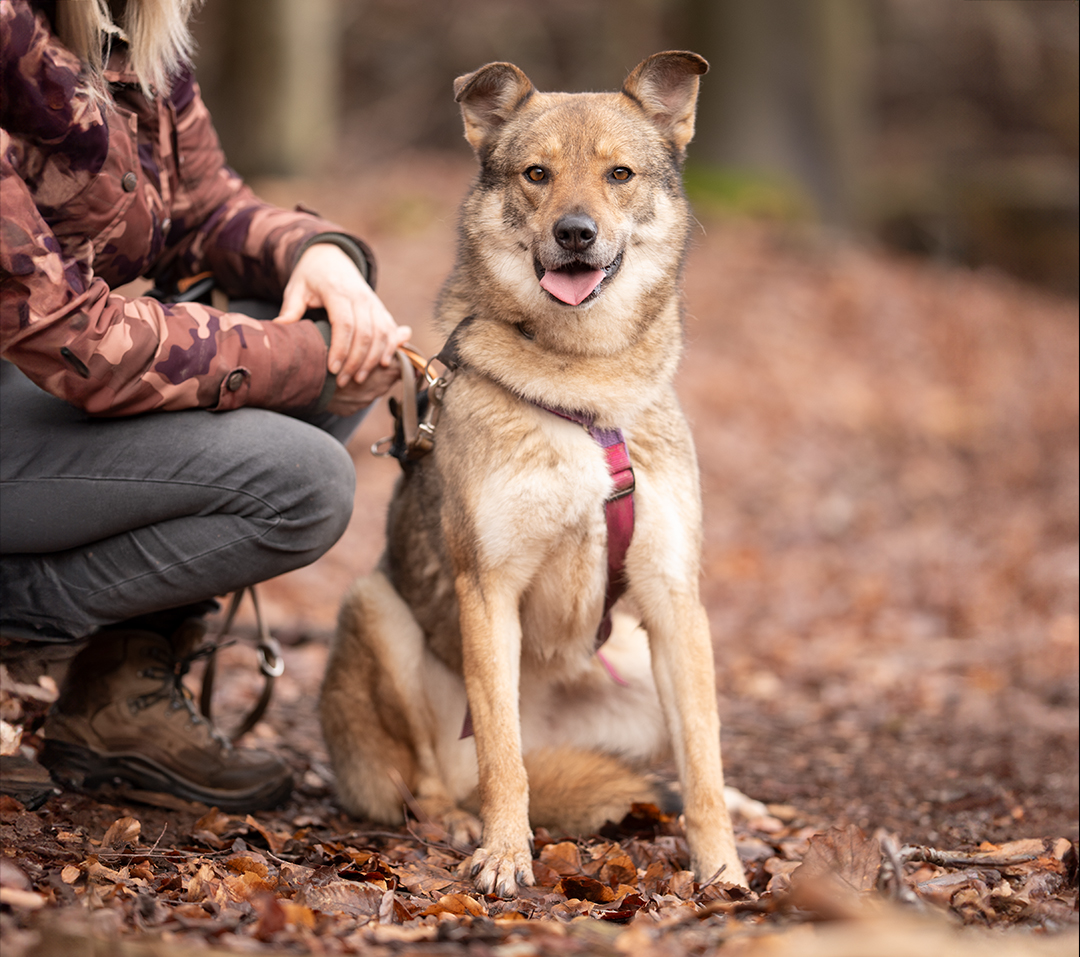 Die lauffreudige Hündin ist gerne mit ihren Gassigehern in der Natur unterwegs und läuft schon gut an der Leine.