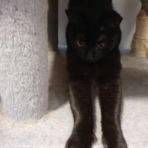 Die kleine PJ kommt aus zweifelhafter Haltung, ist aber ein kleiner Sonnenschein. Im Katzenhaus hält sie sich - frisch angekommen - noch etwas zurück, kommt aber bei Ansprache gerne aus ihrem Eckchen und lässt sich streicheln.