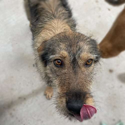 Sandra ist sehr verträglich mit anderen Hunden und spielt für ihr Leben gern. Menschen, die sie kennt, begrüßt sie überschwänglich, bei Fremden kommt sie vorsichtig schauen, doch wenn man sich dann ein wenig ihr beschäftigt, schmiegt sie sich eng an.