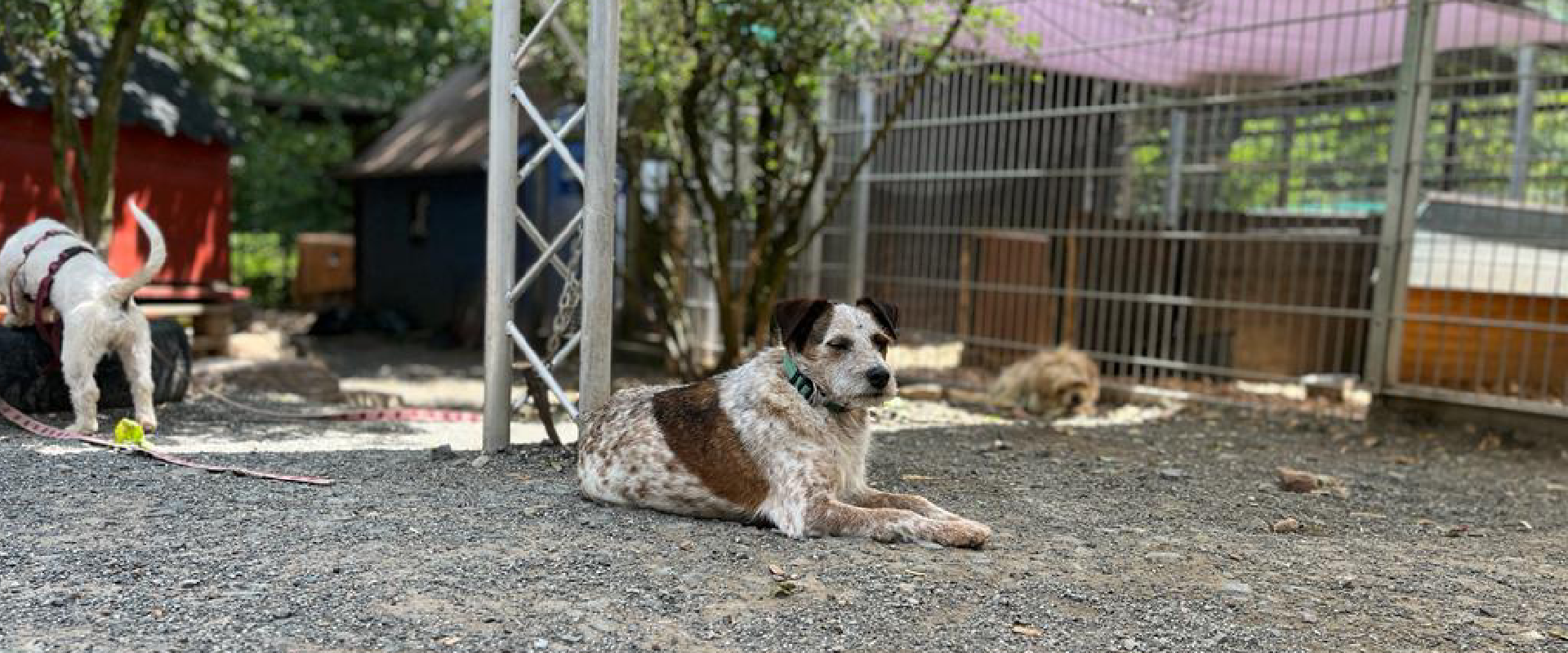 Jetzt ist Sigmund komplett bei uns angekommen, er macht seine ersten Spaziergänge und erkundet die Neue Welt. Wenn er nicht spazieren geht, läuft er den ganzen Tag mit den verschiedensten Hunden durch den Hof. Mit Hunden hat er kein Problem, Katzen sind noch nicht bekannt.